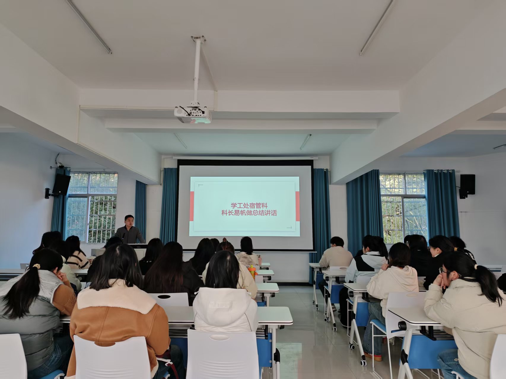 最后,学工处宿管科科长易帆在总结讲话中强调,楼栋长与楼层长要充分发挥模范带头作用,牢固树立服务意识,以实际行动践行责任担当,推动“一站式”学生社区管理与服务水平的提升。