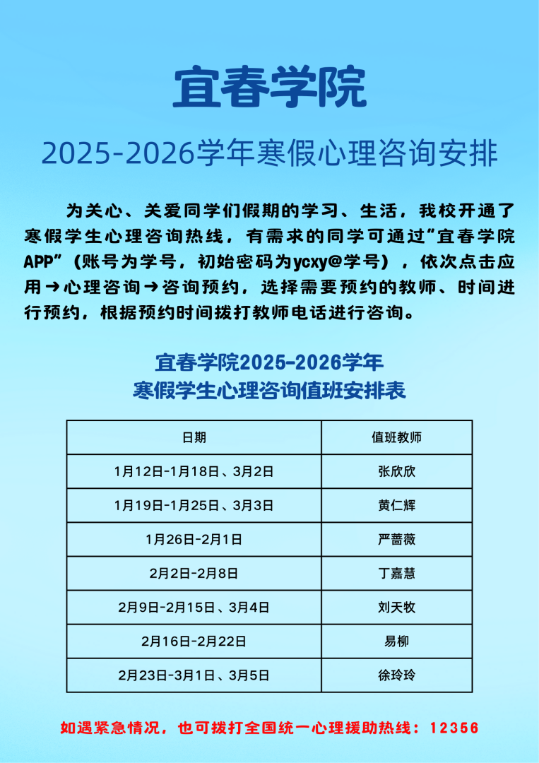 如果你在假期中感到需要更多支持,或想要梳理情绪、探讨成长,我们依然在这里。学生工作处大学生心理健康教育与咨询中心在寒假期间提供持续的心理咨询服务。