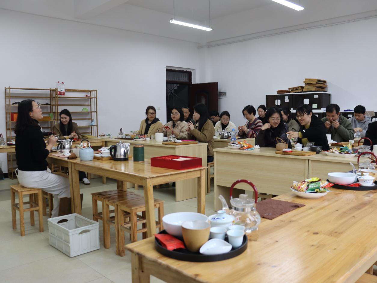 随后,活动进入美育实践与健身赋能体验环节。在“茶韵商道”分会场,巫晶老师带领辅导员们走进中国茶文化世界,通过识茶、泡茶、品茶沉浸式体验,系统了解绿茶、白茶、黄茶、红茶、乌龙茶、黑茶六大茶类制作工艺与风味特点,学习冲泡技巧与品鉴礼仪,在一斟一饮间陶冶心性、感受东方美学的熏陶;在“舞动管理”分会场,李丹丹老师带领辅导员们随乐起舞,在动感的节奏中舒展身心、释放压力老师们动静之间,不仅舒缓了工作疲惫,更激发了团队活力积极心态赋能工作,用健康体魄守护学生成长。